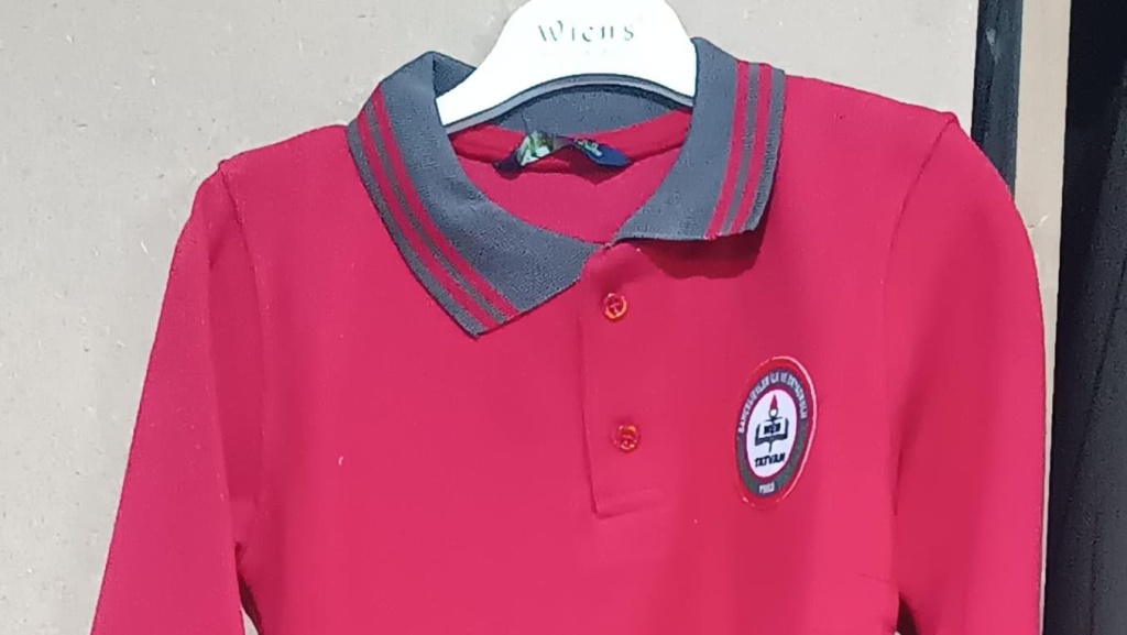 Erkek öğrencilerimiz için bordo rengi polo yaka uzun kolu tişört ve lacivert pantolon
